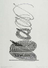 In the 1980s, after working primarily with sound and language for a number of years, Greenham returned to visual works, producing a series of computer graphic compositions through a combination of emerging home computing technologies, photocopying and collage.